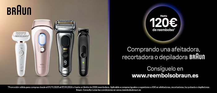 Hasta 100€ de reembolso. Comprando una afeitadora, recortadora o depiladora Braun a partir de 60€